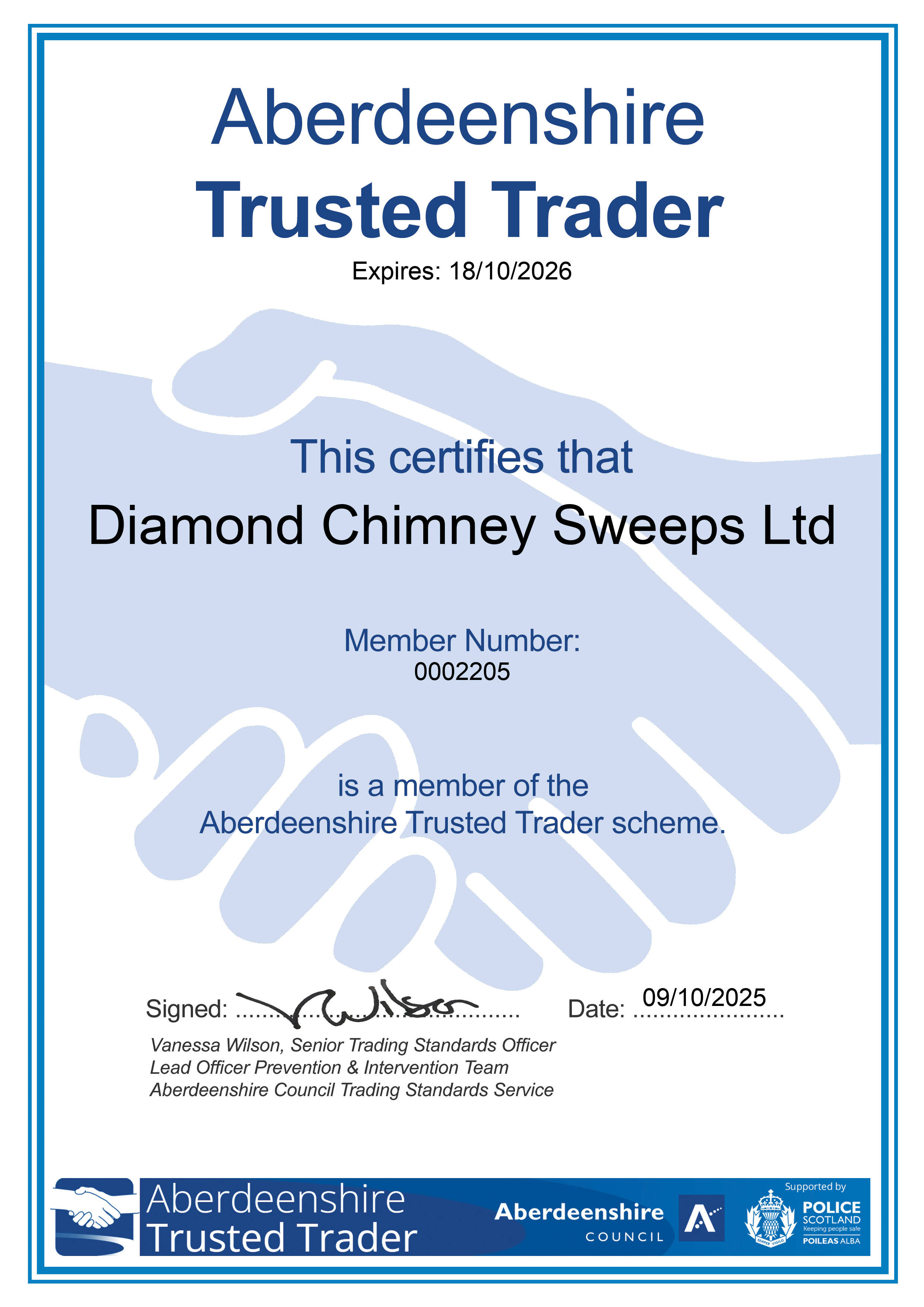 From Cottages to Castles, Diamond Chimney Sweeps Ltd provide a professional chimney cleaning and maintenance service covering Aberdeen and Aberdeenshire.
